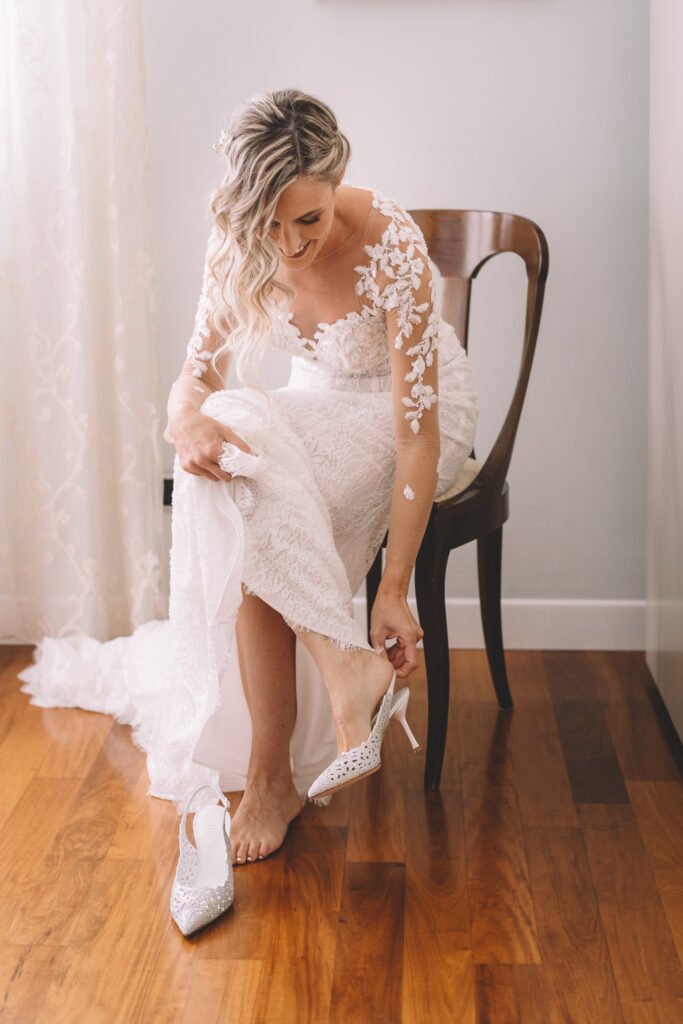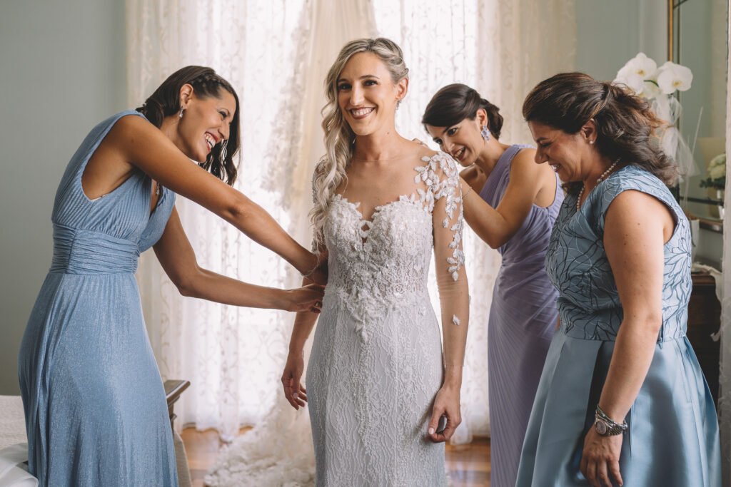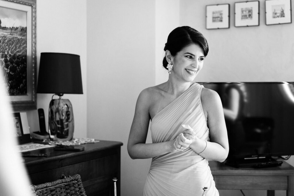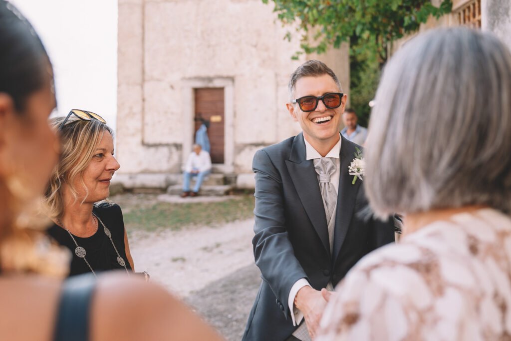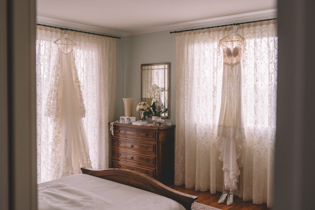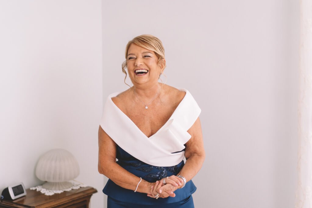 Giulia era un vero spettacolo in un magnifico abito di Mariages, che aggiungeva un tocco di eleganza classica alla giornata. Ogni dettaglio dell’abito era pensato per risaltare la bellezza naturale della sposa, rendendola protagonista assoluta del giorno.