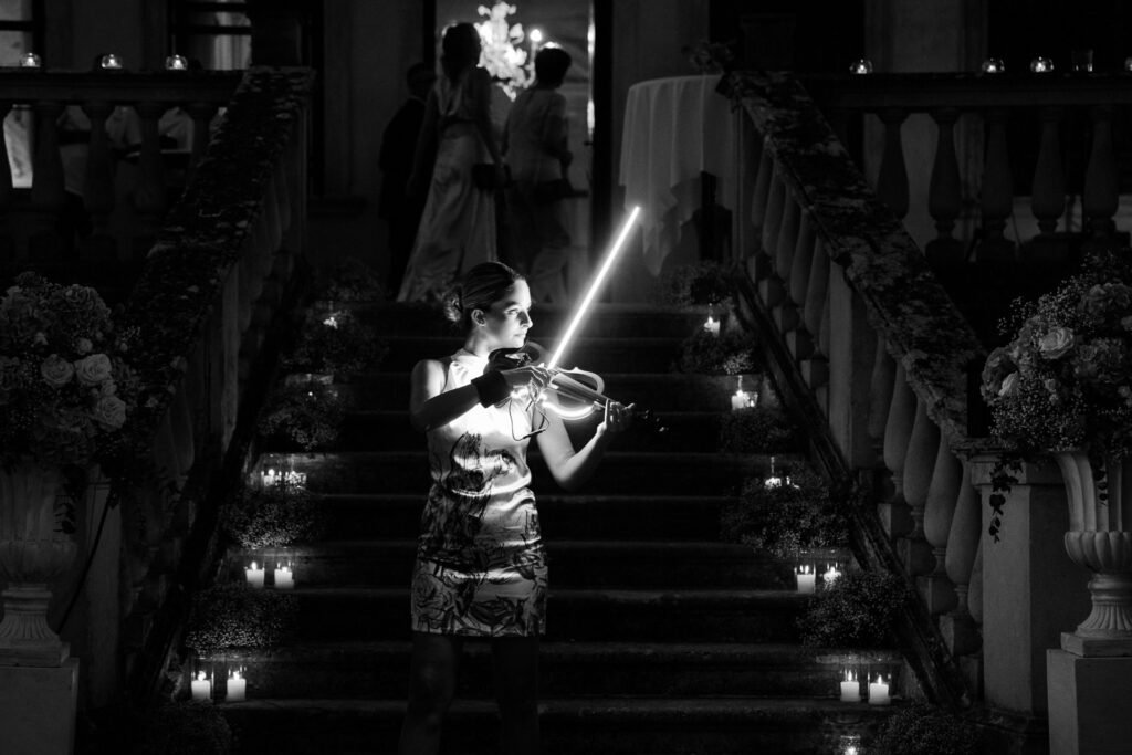 La cerimonia è stata accompagnata dalle note delicate del violino di Eudora, la cui musica ha creato un’atmosfera magica e ha reso ogni momento ancora più speciale. La scelta di includere musica dal vivo ha arricchito l’esperienza emotiva di tutti i presenti, legando indissolubilmente le melodie ai ricordi di questo giorno.