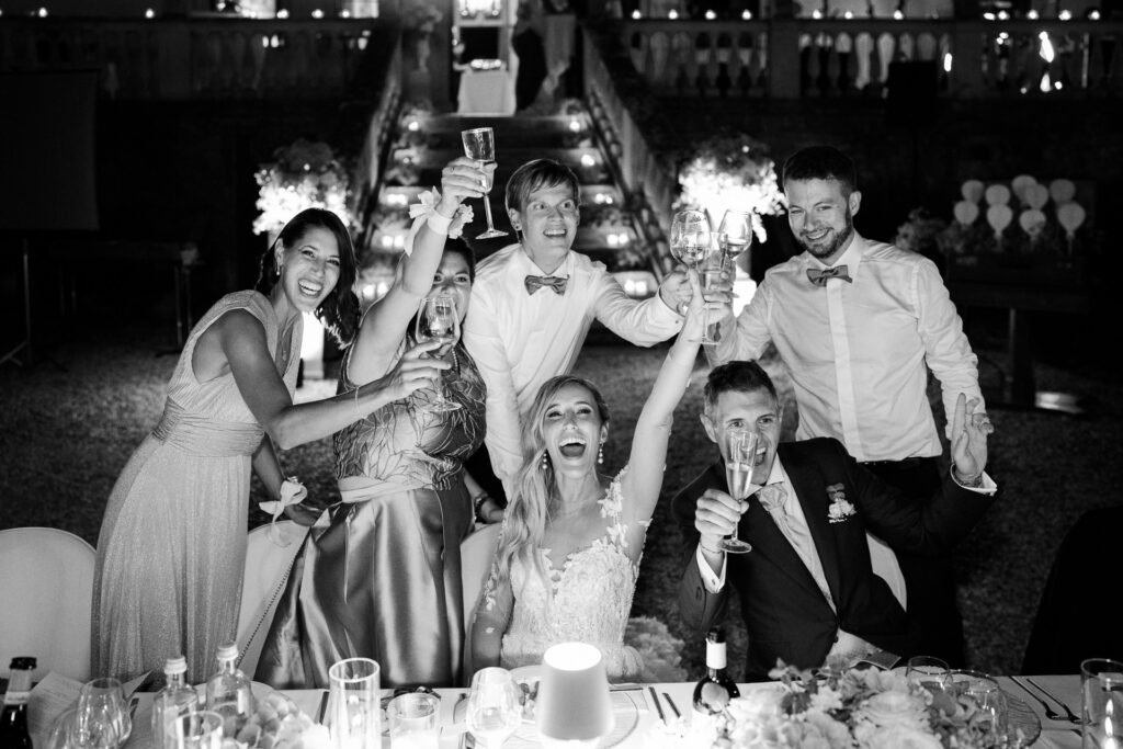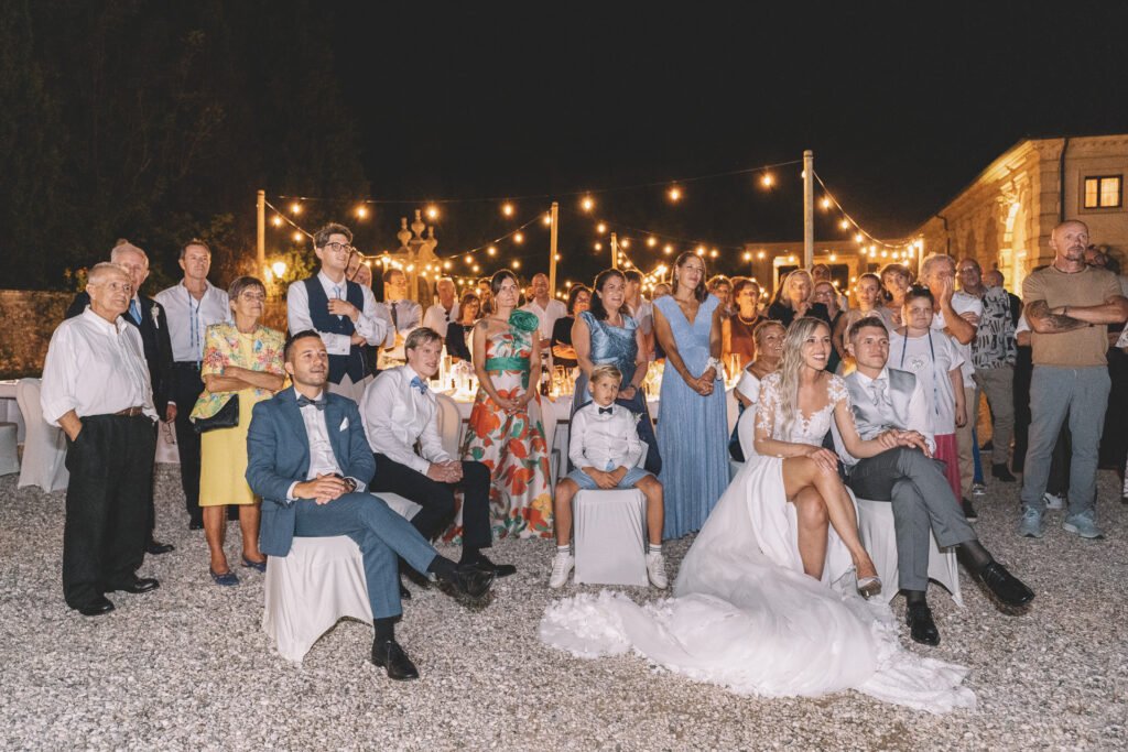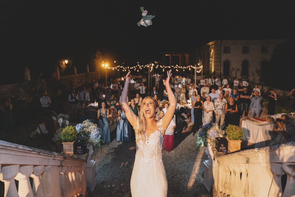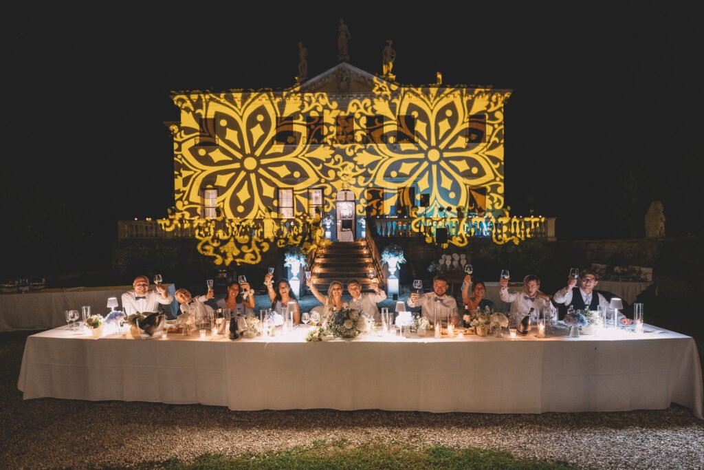 Il ricevimento presso Villa Valmarana ai Nani è stato un vero trionfo di gioia, con gli spazi storici della villa che hanno offerto il palcoscenico perfetto per celebrare l’amore di Giulia e Antonio. Le sale affrescate e i giardini impeccabili hanno fornito una cornice senza tempo per le fotografie.