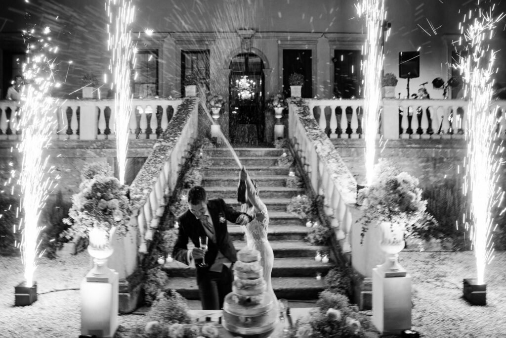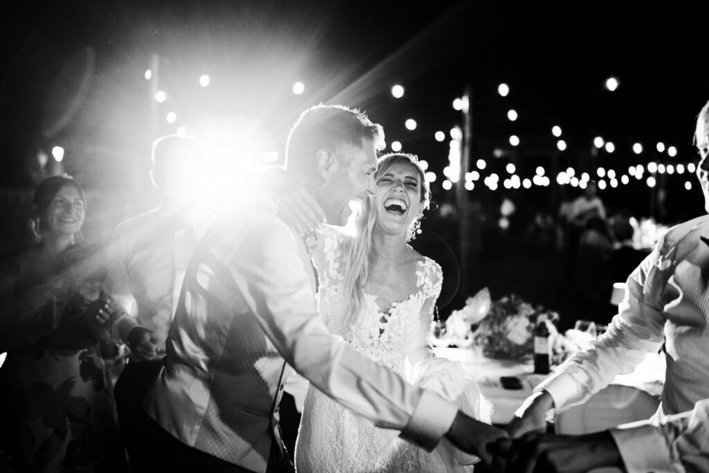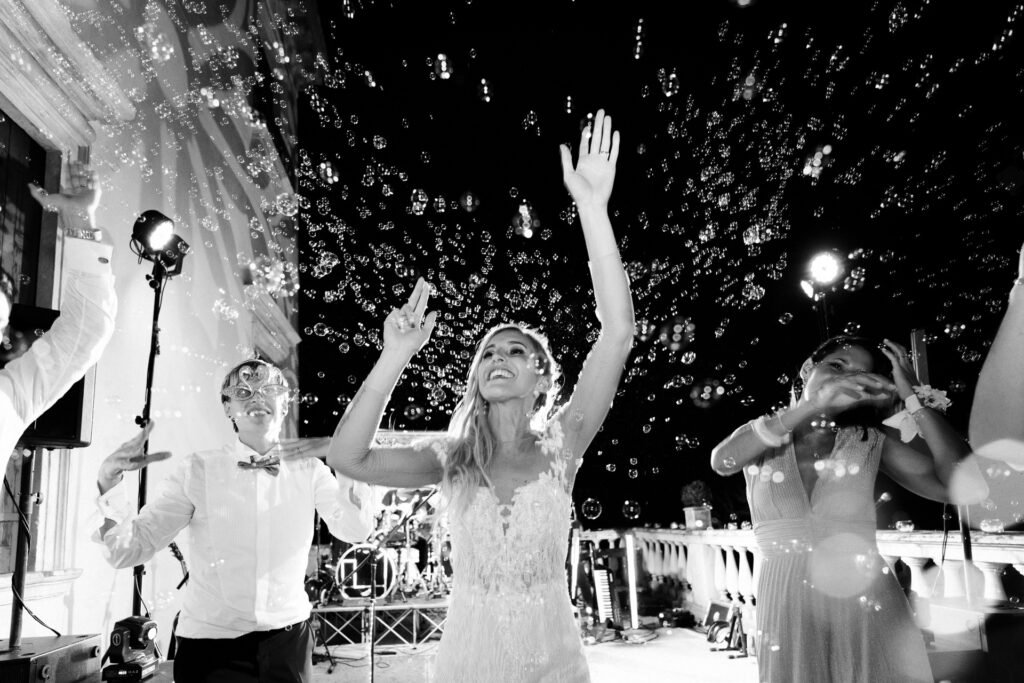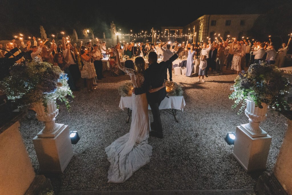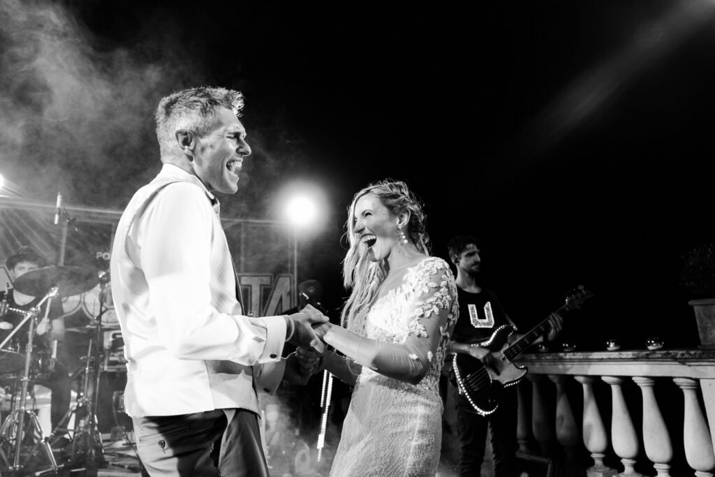 La serata è stata animata dall’energia contagiosa della Nuovanta Band, che con la loro musica hanno trasformato il ricevimento in una festa epica. La band ha saputo coinvolgere tutti gli invitati, creando un’atmosfera festosa e vivace che ha reso il finale del matrimonio indimenticabile.